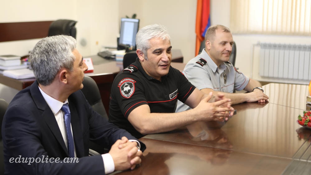 The guests were met by the Head of the Educational Complex of Police of RA, police colonel Manuk Muradyan, Deputy Head, police lieutenant colonel Misak Markosyan and leadership staff. The guests with the Head of the Educational Complex had a trip around the territory, Police museum, gym hall, as well as simulation room, where the Head of the Chair of Criminal intelligence and Criminalistics of the Academy of the Educational Complex, police colonel Manuk Semerjyan gave information on current courses and practical lessons. The meeting had continuation in the office M. Muradyan, where participants discussed also issues with common interests.