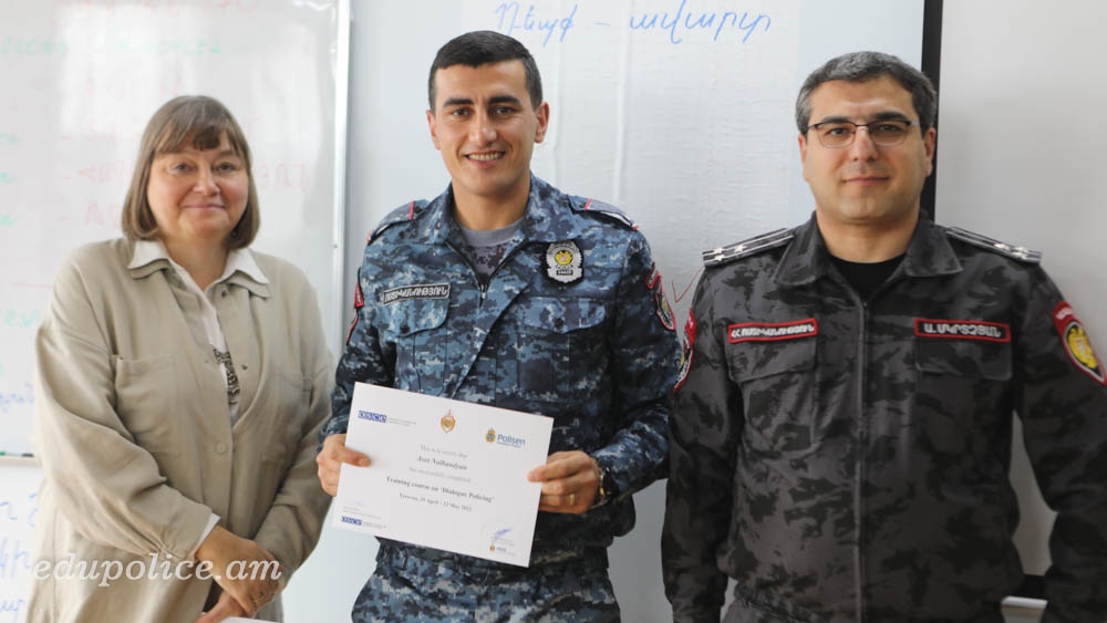 On the 12th of May the training course on “Dialogue policing” was over. Police officers of several police subdivisions of Police of RA took participation in the training course, arranged by OSCE secretariat. During the training course representatives of Police of RA were acquainted with Swedish experience in the field of police communication with citizens, especially, its useful technics, methodology and practice-based problem solving.