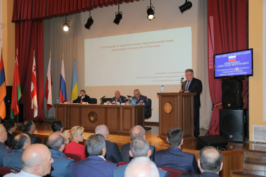 Ս/թ հոկտեմբերի 11-ից 13-ը ՀՀ ոստիկանության կրթահամալիրում տեղի ունեցավ «Թմրամիջոցների ապօրինի շրջանառության դեմ պայքարի քրեաիրավական, քրեաբանական և քրեագիտական ասպեկտները» թեմայով միջազգային գիտագործնական համաժողովը, որին մասնակցում էին Ռուսաստանի Դաշնության, Վրաստանի, Ուկրաինայի, Լեհաստանի Հանրապետության, Բելառուսի Հանրապետության ոստիկանական բարձրագույն ուսումնական հաստատությունների 11 ներկայացուցիչներ, ինչպես նաև ՀՀ ոստիկանության ԿՀԴՊ գլխավոր վարչության, ՀՀ նարկոլոգիական հանրապետական կենտրոնի, ՀՀ գլխավոր դատախազության, ՀՀ ԳԱԱ փորձաքննությունների ազգային բյուրոյի, ՀՀ ԱՆ քրեակատարողական վարչության, ՀՀ Ազգային անվտանգության ծառայության ներկայացուցիչները: