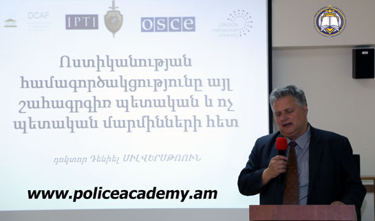 Սեմինարի ընթացքում զեկույցներով հանդես եկան ԵԱՀԿ քարտուղարութան ներկայացուցիչ պարոն Թորսթեն Շտոդյեկը և ԶՈՒԺՎ Ժնևի կենտրոնի փորձագետներ դոկտոր Թիմ Փարսոնսը և դոկտոր Դենիել Սիլվերսթոունը: Ելույթ ունեցավ նաև ՀՀ ոստիկանության կրթահամալիրի ներկայացուցիչ կրթահամալիրի ակադեմիայի իրավագիտության ֆակուլտետի վարչական իրավունքի և ոստիկանության վարչական գործունեության ամբիոնի ավագ դասախոս, ոստիկանության փոխգնդապետ Վլադիմիր Ավագիմյանը՝ ներկայացնելով «Համայնքային ոստիկանության մոդելի կիրառման Հայաստանի փորձը. հիմնական մարտահրավերները» թեմայով զեկույցը: