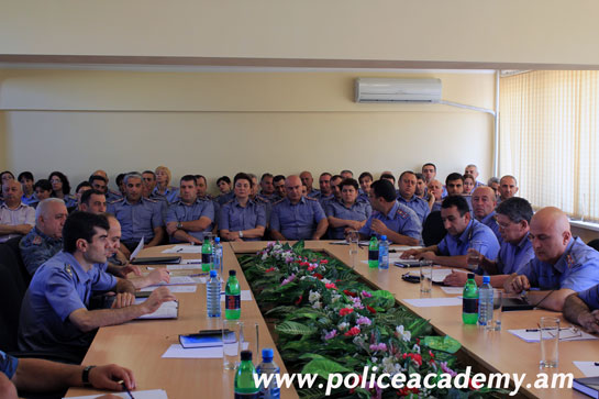 Հաշվետու ելույթներով հանդես եկան ՀՀ ոստիկանության կրթահամալիրի պետ, ոստիկանության գեներալ-լեյտենանտ Հ. Կ. Վարյանը, ՀՀ ոստիկանության կրթահամալիրի ակադեմիայի պետ, ոստիկանության գնդապետ Ա. Պ. Ղազարյանը, ՀՀ ոստիկանության կրթահամալիրի քոլեջի պետ, ոստիկանության գնդապետ Ա. Է. Սուքիասյանը, ՀՀ ոստիկանության կրթահամալիրի ուսումնական կենտրոնի պետ, ոստիկանության գնդապետ Ա. Զ. Քեշիշյանը: Ընդհանուր առմամբ, 2014թվականի առաջին կիսամյակի կատարած աշխատանքները գնահատվեցին բավարար և տրվեցին համապատասխան հանձնարարականներ` եղած թերացումները վերացնելու և երկրորդ կիսամյակի աշխատանքները պլանավորելու ուղղությամբ: