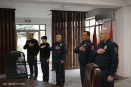 Սովորողները ՀՀ եռագույն դրոշի ներքո հանդիսավոր կերպով երդվել են հավատարիմ լինել Հայաստանի Հանրապետության սահմանադրական կարգին, անվերապահորեն ղեկավարվել օրենքներով, պաշտպանել հայրենիքը, պահպանել պետական և ծառայողական գաղտնիքը, արդար և անկողմնակալ իրականացնել լիազորությունները, ազնիվ և բարեխիղճ կատարել ծառայողական պարտականությունները:
