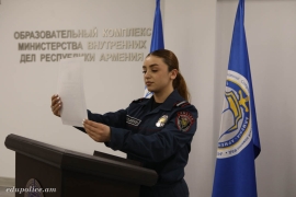 Ոստիկանական ուսումնական ստորաբաժանման պետ, ոստիկանության գնդապետ Գ. Գրիգորյանը, շնորհավորելով սովորողներին, կարևորել է երդման բովանդակային դրույթները՝ սահմանադրական կարգը, հայրենիքը և օրենքների գերակայություը՝ այն արժեքները, որոնք պետք է պահպանել, պաշտպանել և լինել հավատարիմ։
