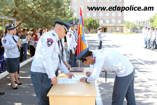 2014թ. հոկտեմբերի 7-ին տեղի ունեցավ ՀՀ ոստիկանության կրթահամալիրի ակադեմիայի և քոլեջի 2014-2015 ուս տարվա նոր ընդունված սաների երդման հանդիսավոր արարողությունը: Ներկա էին ՀՀ ոստիկանության պետի տեղակալ, ոստիկանության գեներալ-մայոր Գ. Համբարձումյանը, ՀՀ ոստիկանության կրթահամալիրի պետ, ոստիկանության գեներալ-լեյտենանտ Հովհ. Վարյանը, կրթահամալիրի պրոֆեսորադասախոսական անձնակազմը և սովորողների ծնողները: Ոստիկանության գեներալ-մայոր Գ. Համբարձումյանը շնորհավորեց սովորողներին` ընդգծելով այն հանգամանքը, որ ոստիկանը պետք է հավատարիմ մնա իր երդմանը: Երդման արարողությունն ավարտվեց հանդիսավոր շքերթով:
