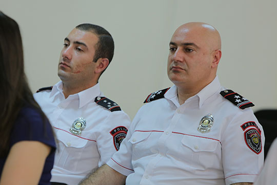 Նիստին ներկա էին ՀՀ ոստիկանության կրթահամալիրի պետի առաջին տեղակալ, իրավաբանական գիտությունների թեկնածու, ոստիկանության գնդապետ Տ. Եսայանը, կրթահամալիրի ակադեմիայի պետ, բանասիրական գիտությունների թեկնածու, ոստիկանության գնդապետ Ա. Ղազարյանը, ՀՀ ոստիկանության կրթահամալիրի պրոֆեսորադասախոսական կազմի և վարչակազմի մի շարք ներկայացուցիչներ, ինչպես նաև՝ ՀՀ ոստիկանության իրավաբանական վարչության իրավական պաշտպանության բաժնի հատկապես կարևոր հանձնարարություններով ավագ տեսուչ, ոստիկանության փոխգնդապետ Ա. Աբրահամյանը, ՀՀ ոստիկանության հասարակական կարգի ապահովման վարչության արտաքին ծառայության բաժնի ավագ տեսուչ, ոստիկանության կապիտան Ա. Հարությունյանը, ՀՀ ոստիկանության Երևան քաղաքի վարչության պարեկապահակետային ծառայության ոստիկանության 5-րդ հատուկ գումարտակի 2-րդ վաշտի հրամանատար, ոստիկանության կապիտան Հ. Վարդանյանը: