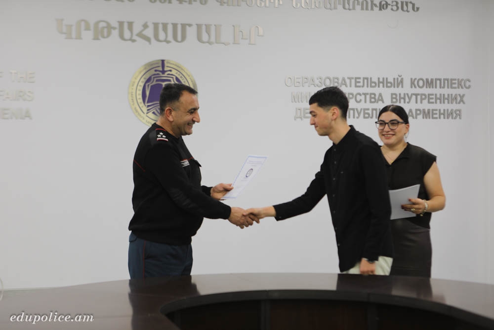 Ներկա էին Կրթահամալիրի ոստիկանական ուսումնական ստորաբաժանման պետ, ոստիկանության գնդապետ Գ․ Գրիգորյանը, նույն ստորաբաժանման պետի տեղակալ, ոստիկանության գնդապետ Գ․ Կարապետյանը։ Նախքան հավաստագրերը հանձնելը՝ Գ․ Գրիգորյանը, շնորհավորելով հարցազրույցը հաղթահարած սովորողներին, անդրադարձավ իրավաբանական կլինիկայի գործունեության նշանակությանը՝ նշելով, որ այն սովորողների համար գործնական հմտություններ ու կարողություններ ձեռք բերելու և զարգացնելու շատ լավ հնարավորություն է, քանի որ միայն տեսական գիտելիքները բավարար չեն իրավաբանի մասնագիտական գործունեության համար, իսկ «Pro Bono» իրավաբանական կլինիկան մասնագիտական գիտելիքի կատարելագործման համար իրական հնարավորություն է։