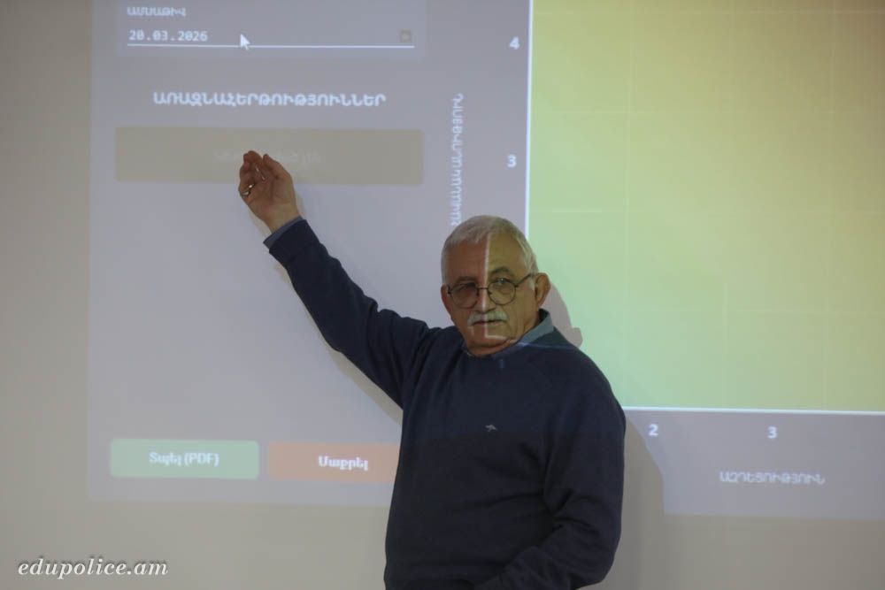 ՀՀ ՆԳՆ կրթահամալիրի ուսումնական գործընթացի զարգացմանը, ուսանողների մասնագիտական կարողությունների ձևավորմանը և աղետների ռիսկի կառավարման ոլորտում ժամանակակից գիտելիքների ու փորձի փոխանցմանը նպաստելու նպատակով Փրկարար ծառայության և ճգնաժամային կառավարման ուսումնական ստորաբաժանման սովորողների համար 2026 թ․ մարտի 20-ին կազմակերպվել էր «Աղետների ռիսկի կառավարման ապագան․ գաղափարներ, փորձ և նորարարություն» թեմայով մասնագիտական հանդիպում–քննարկում։