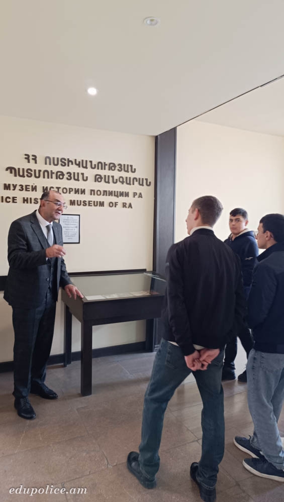 Սովորողների շրջայցը եզրափակվել է Ոստիկանության պատմության թանգարանում։ Ցուցադրված ֆոնդերի շրջանակում Դ. Հովսեփյանը ներկայացրել է մ.թ. 367 թվականին Մեծ Հայքի արքա Արշակ Բ Արշակունու և Ոստանիկ Դրաստամատի ինքնասպանության դեպքը, ցարական Ռուսաստանի ժամանակաշրջանում Արևելյան Հայաստանի ձևավորման գործընթացը, Առաջին Հանրապետության կազմավորումը, սովետական միլիցիայի շրջանը, ինչպես նաև Հայաստանի Հանրապետության անկախացումից հետո մինչև մեր օրերը տեղի ունեցած զարգացումները։ Նա առանձնակի ուշադրություն է դարձրել ՆԳՆ տարբեր ստորաբաժանումների, այդ թվում՝ հրշեջ պահպանության վարչության կողմից իրավակարգի ապահովման, հրդեհաշիջման և հանցագործությունների դեմ պայքարի ոլորտներում իրականացված հայրենանվեր աշխատանքներին։