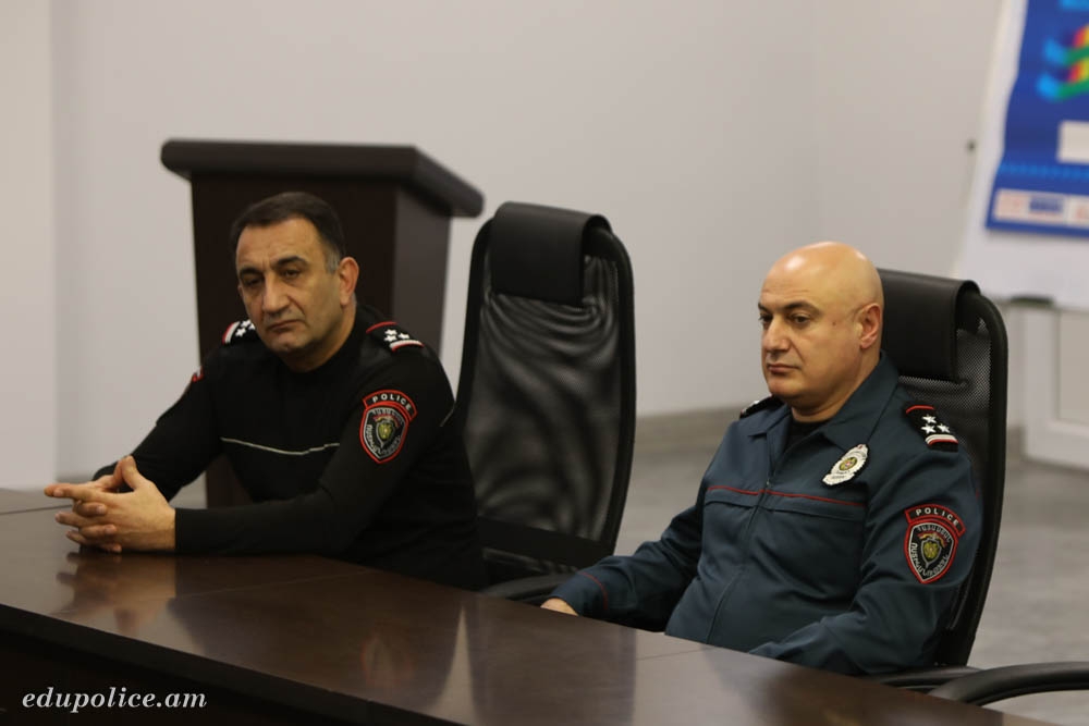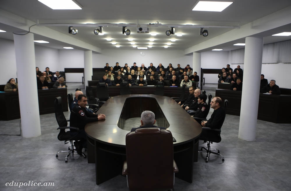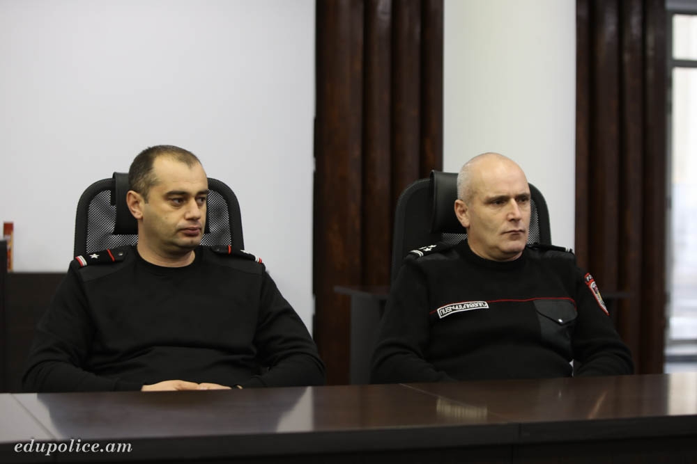 Հունվարի 19-ին տեղի ունեցավ Արհեստագործական հիմնական ծրագրի «Ոստիկանական գործ» մասնագիտության «Համայնքային ոստիկան» որակավորմամբ ապագա համայնքային ոստիկանների հետ ՆԳՆ կրթահամալիրի և ոստիկանական ուսումնական ստորաբաժանման ղեկավար կազմի հանդիպումը։