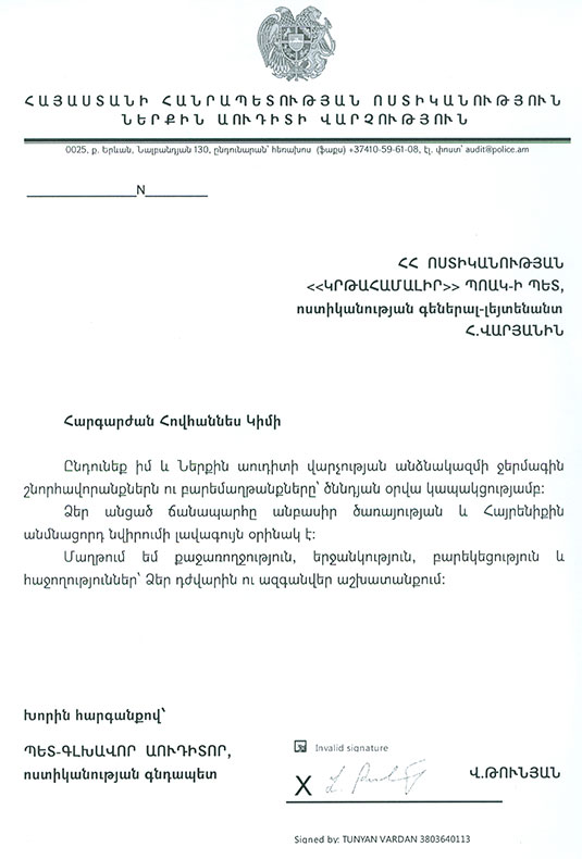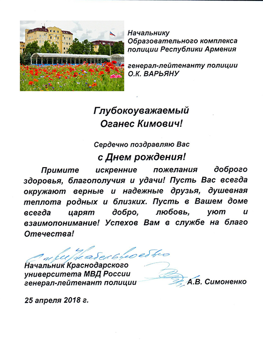 Մեր գործընկերների շնորհավորանքները գեներալ-լեյտենանտ Հովհաննես Վարյանի ծննդյան օրվա կապակցությամբ