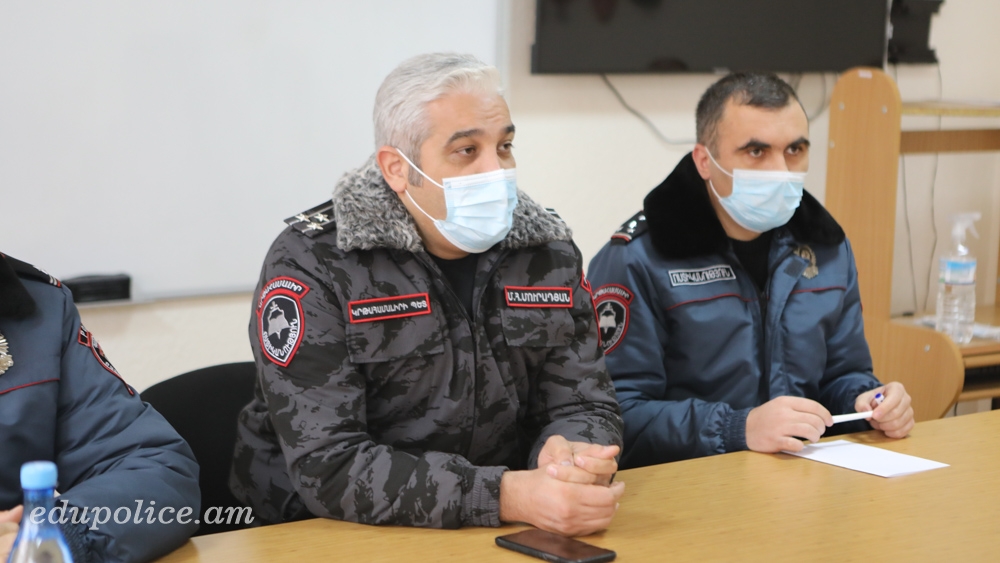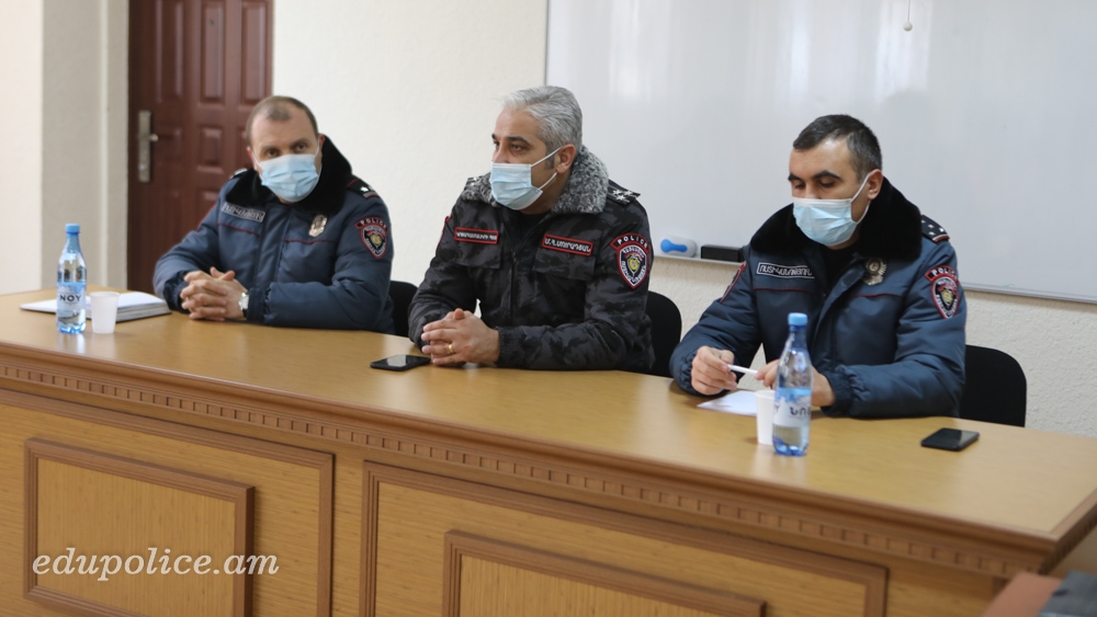 Նիստը նախագահում էր ՀՀ ոստիկանության կրթահամալիրի պետ, ոստիկանության գնդապետ Մ.Մուրադյանը։ Հանդիպմանը ներկա էին նաև պետի տեղակալ, ոստիկանության փոխգնդապետ Մ.Մարկոսյանը, Ուխ հարցերով համակարգող Տ.Խաչատրյանը , ՈւԽ նախագահ Գ.Առաքելյանը և ուսանողական խորհրդի անդամները։