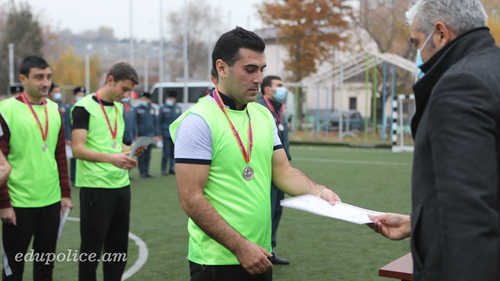 Призеров турнира наградили медалями, а победившую команду начальник Образовательного комплекса полиции РА, полковник полиции М. Мурадян также наградил переходящим кубком, отметив, что проведение турнира имеет важное значение для студенческого контингента. М. Мурадян выразил надежду, что студенческие мероприятия отныне будут проводиться чаще, и Образовательный комплекс по возможности будет способствовать проведению подобных мероприятий.
