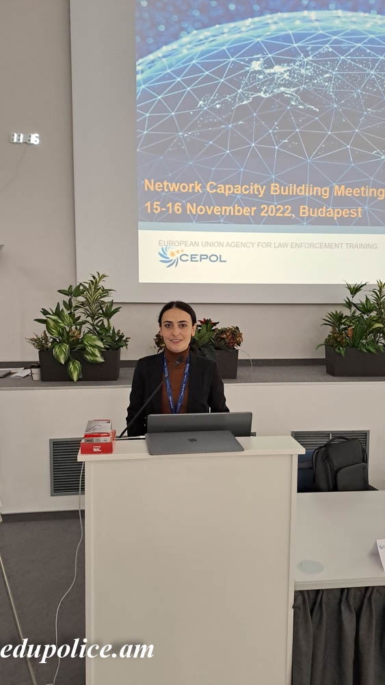 С 15 по 16 ноября в Будапеште, Венгрии, состоялась очередная встреча ответственных за региональную программу Агентства по подготовке правоохранительных органов ЕС (CEPOL) «Обучение и оперативное сотрудничество в борьбе с организованной преступностью» (TOPCOP). От Образовательного комплекса участвовала заместитель начальника отдела международного сотрудничества и внедрения информационных технологий управления по учебно-методической работе и развитию, подполковник полиции Сафарян Карине.